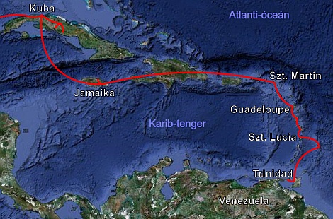 Trinidad szigetére, amit csak a Venezuelába induló komp miatt kellett beiktatni az útitervbe. Az imént vázolt útvonal a fenti térképre pillantva immáron könnyedén átlátható.